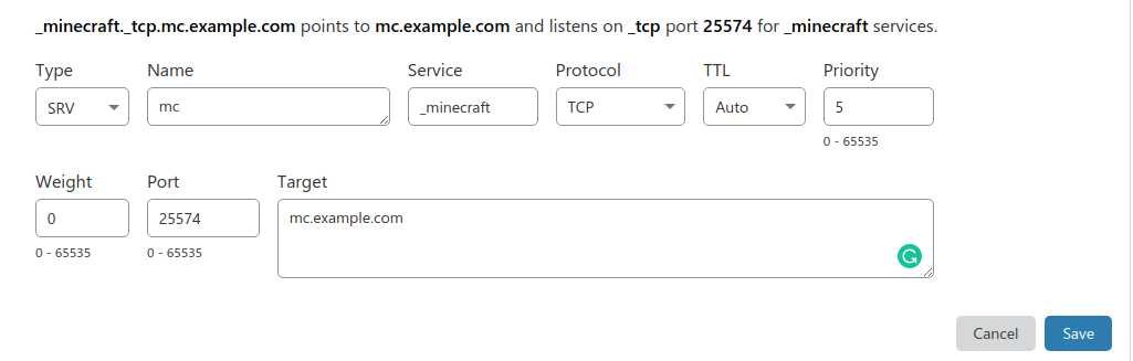 Example SRV Record